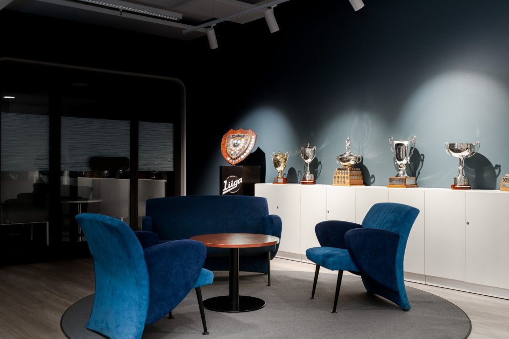 Uusien tilojen myötä Liigan arki on selkeytynyt. Toimistotyöalueet, neuvottelutilat ja logistiikka toimivat nyt omissa kokonaisuuksissaan, ja tilat mahdollistavat myös tilaisuuksien järjestämisen.