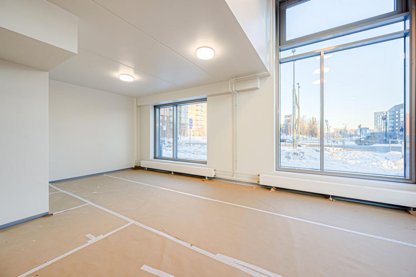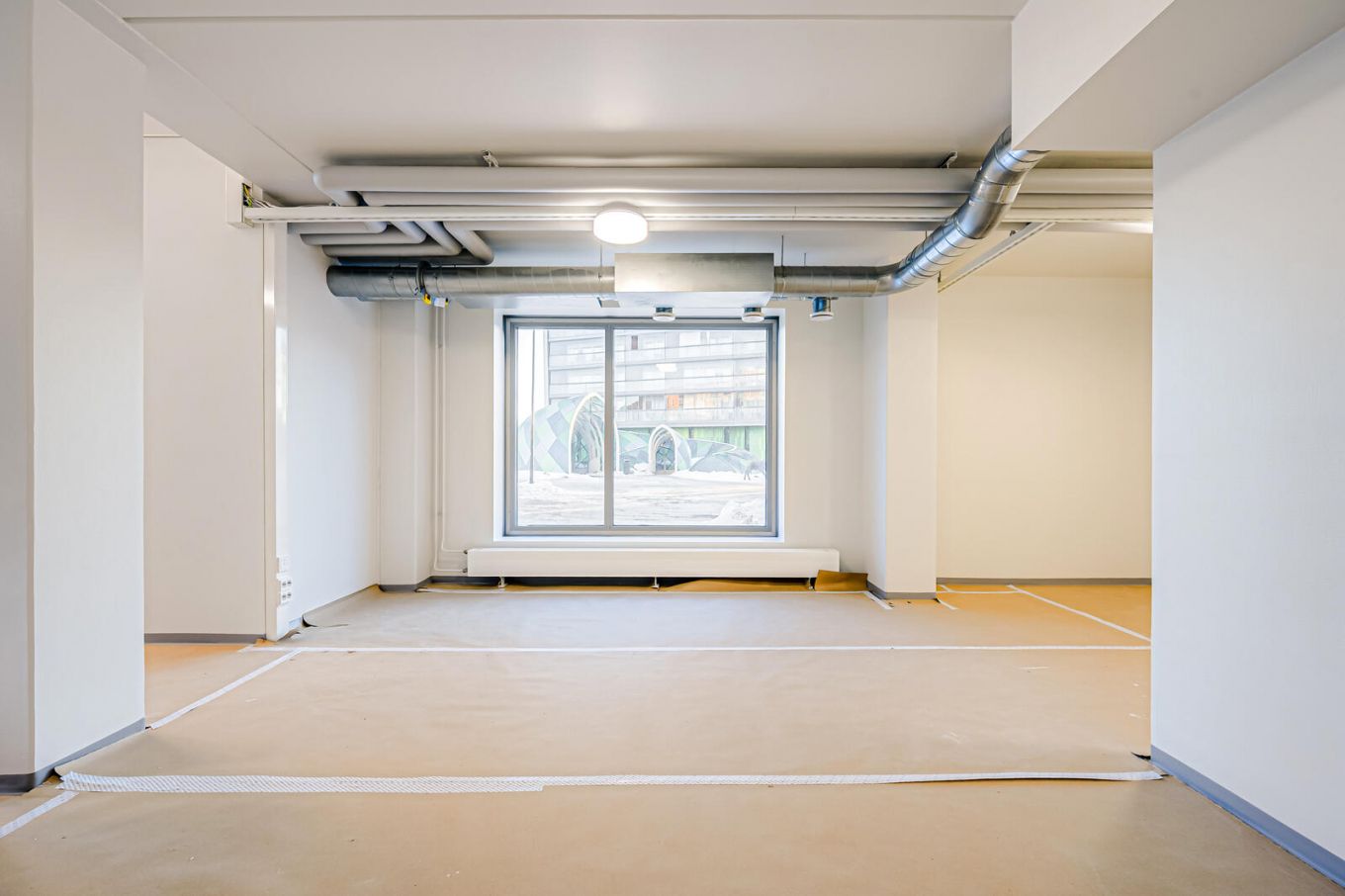 Tilassa on osittain erikoiskorkea huonekorkeus, mikä mahdollistaa näyttävän sisustuksen ja lisää käyttömukavuutta esimerkiksi myymälä- tai asiakaspalvelutilana. Tilan pohjaratkaisu on joustava ja muokattavissa eri käyttötarkoituksiin – sopii erinomaisesti mm. myymäläksi tai toimistoksi. Ei sovellu ravintolaksi tai kahvilaksi.